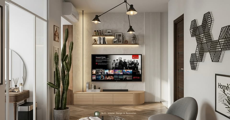 材質與光影,讓牆面不只是背景,而是生活的舞台。空間亮點:電視牆:礦物漆的顆粒感,替平整的牆面增添了變化。格柵:一個帶點自私的設計,界定了的空間表情。地板:魚骨拚的方向性,讓視覺有了延伸。氛圍:造型燈具與白色霧面玻璃,展現屋主的性格,也讓光線更柔和。從牆面到地板,再從材質到燈光,家的個性在這些細節裡揭開序幕。
